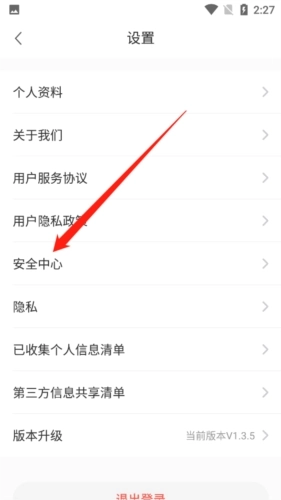 2、在设置中选择“安全中心”;