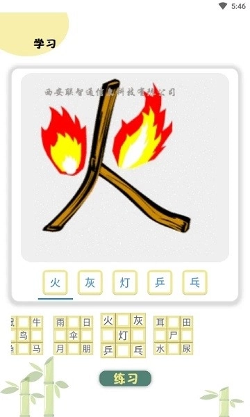 4、每学习完一组字后,会有一个练习环节,巩固学习效果.