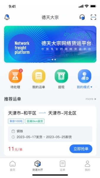 德天大宗司机版不仅简化了货物运输的流程,还提供了全方位的物流服务。货主可以轻松发布运输任务,司机则能在线接单,实现快速响应。系统自动规划最佳路线,结合实时路况信息,助司机规避拥堵,确保货物准时送达。此外,订单管理功能使得从接单到结算的每一个步骤都清晰可见,全程可追溯,让运输更放心。立即,享受德天大宗司机版带来的智能物流服务!