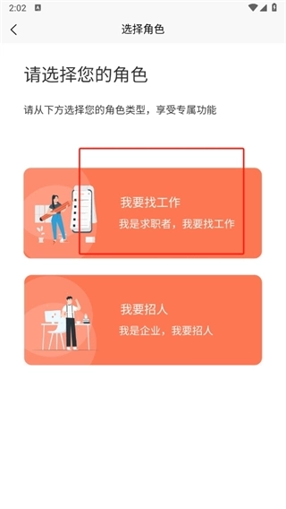 4、选择我们的注册身份【我要找工作】或者【我要招人】。