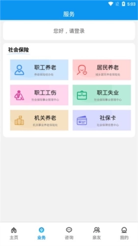 3、在业务办理中就可以看到社会保险服务,大家可以根据自己的需求选择。