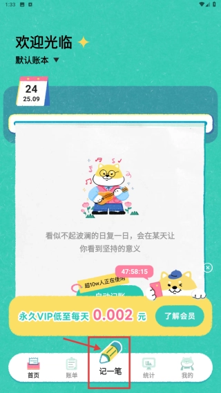 打开记账应用,点击底部的“记一笔”选项,进入记账分类的选择页面。