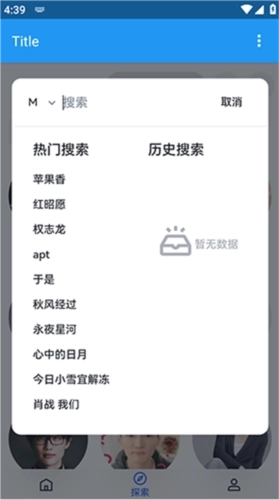 1、软件首页已更新不少热门歌曲,你可以点击顶部的搜索框进行操作。