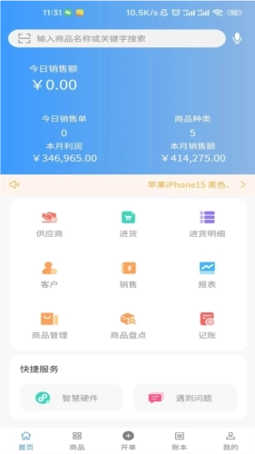 1、全维度进销存管控:采购、售卖、库存信息清晰直观,可随时随地进行记录与盘点,保障经营准确无误。