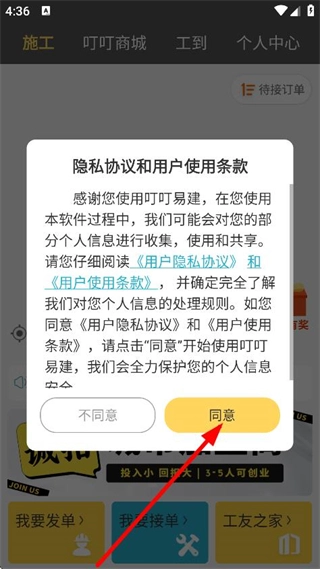 在隐私协议与用户使用条款的弹窗里,点击“同意”按钮,即可进入软件。