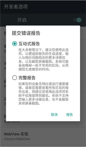 这个功能主要在系统发生故障时使用——也就是我们常说的遇到bug或者设备死机的情况,通过选择这个选项就能生成对应的报告,方便后续提交给相关技术人员来检测和处理问题。