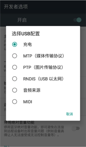 这段功能主要用于设置USB连接电脑后的端口模式,像MTP、PTP、MIDI这类常用功能都包含在内,大家可以根据实际需求选择对应的选项。要是只是想给设备充电,建议选择“仅充电”模式,这种模式下的充电速度是最快的。
