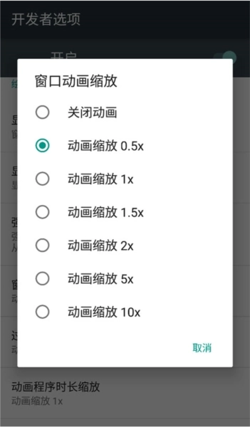 这里提到的1x、2x等代表弹出速度的倍数,倍数越高动画播放越迟缓。实际上,精美的动效会让你在使用手机时感到心旷神怡,因此可以调整到一个自己习惯的倍数。当然,要是你偏爱直接了当的即时响应,也能关闭动画效果。另外,对于配置不高的手机,建议把动画倍数调小一些,否则手机界面的反应可能会变得很慢。