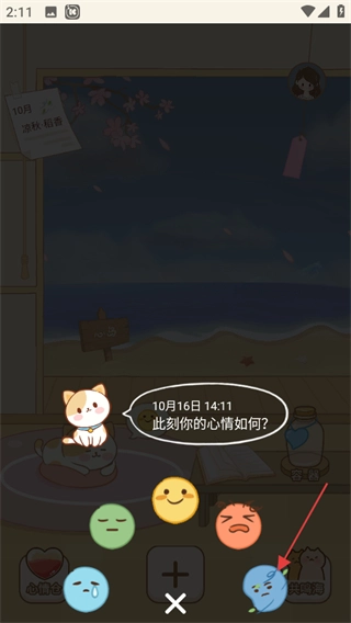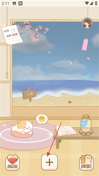 进入心岛日记的主界面后,点击底部的+按钮,就能进入心情选择页面。