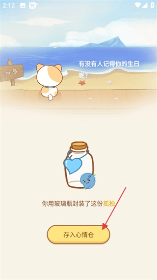写完日记后,进入心情封装页面,点击“存入心情仓”按钮,就能将心情存入心情仓了。