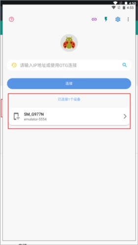 4、这时,我们在新设备上打开甲壳虫ADB助手,输入被控手机的IP地址与端口,就能连接到该手机设备了。