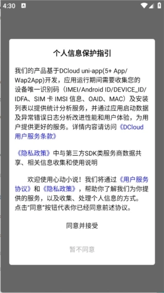 1、安装安卓软件后,进入软件查看并同意隐私政策与用户协议。