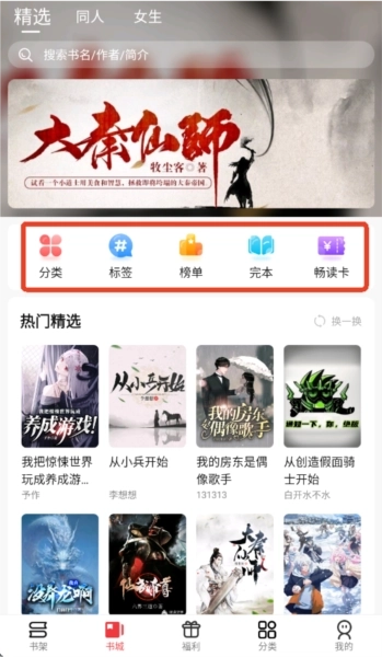 1、读者可以从分类、标签、榜单和完本这四种类型里寻找想要的小说。