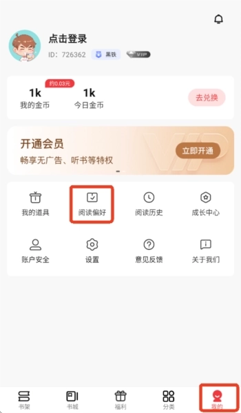 2、在火文小说里,读者能够自行调整偏好设置,具体操作是点击“我的”——“阅读偏好”。
