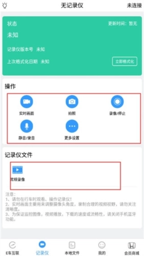 2、点击下方的记录仪,连接行车记录仪后,我们就能在这里实时查看监控视频了。