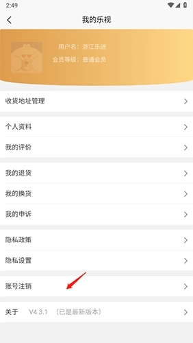 2、点击【账号注销】选项即可。