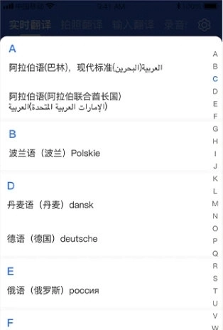 6、用户可以自行切换翻译的语言,该软件也可以进行智能识别,自动识别相符合的语言;