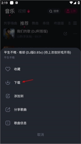 2、打开歌曲功能栏后,用户可以进行收菜或分享歌曲的操作,只需点击相应按钮即可。