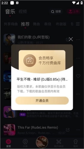 3、用户若想收听歌曲,需开通DJ音乐会员;开通后可畅享全场内容,付费歌曲也能免费收听。