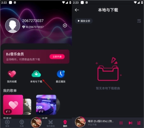 4、当用户下载歌曲后,即可在“我的”页面中打开本地音乐并查看已下载的歌曲。
