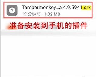 2、其次需要准备好要安装到手机上的.crx格式扩展插件,这类插件可从第三方插件网站获取,这里我选用了使用非常广泛的“Tampermonkey”插件来进行演示。