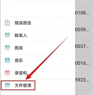 8、当“打开文件”的侧边栏弹出后,点击选择其中的【文件管理】选项。