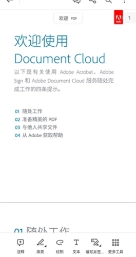 手机版AdobeAcrobat能让用户可以在任何支持共享的应用程序内打开PDF文件进行查阅。