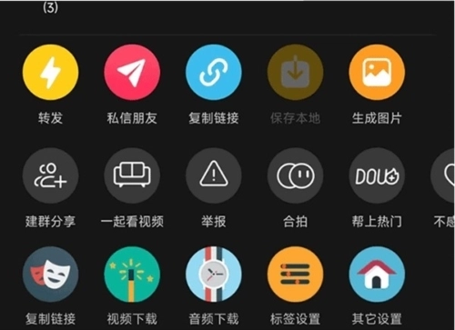 ▼复制链接。短按操作可复制视频或图片的链接;长按操作则用于复制文案内容。