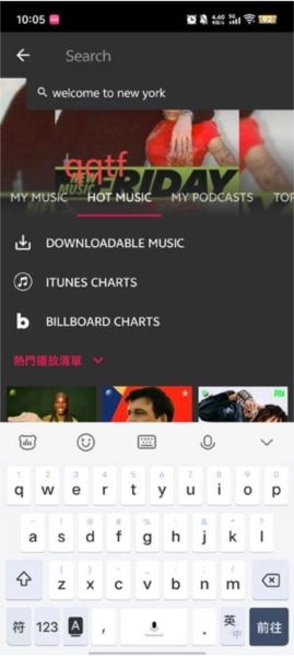 使用搜索栏可以搜索您喜欢的特定歌曲、艺术家或播客。