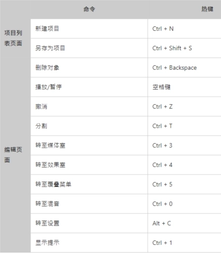 当Chromebook或移动设备连接了蓝牙键盘,在这些设备上使用应用程序时,威力导演行动版能够支持以下的键盘热键。