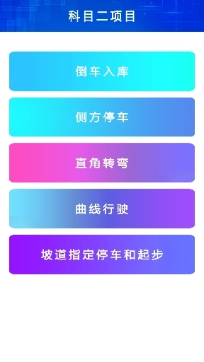 科目二包含直角转弯、曲线行驶、定点停车、侧方停车和倒车入库这五个项目。
