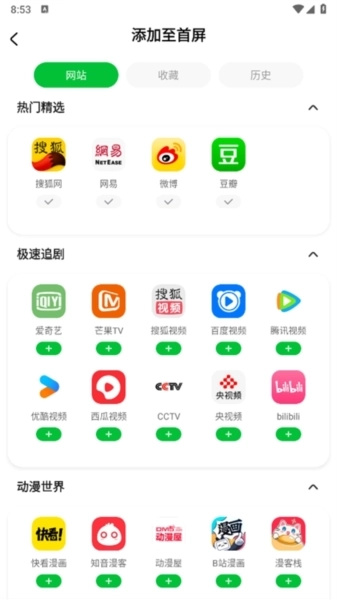 5、点击添加按钮,可以将喜欢的网站直接添加到首屏,浏览更加方便
