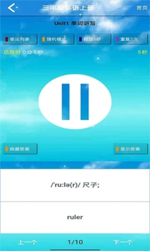 6、单词自测,结合系统发音掌握正确的单词发音,检测自己的错误之处;
