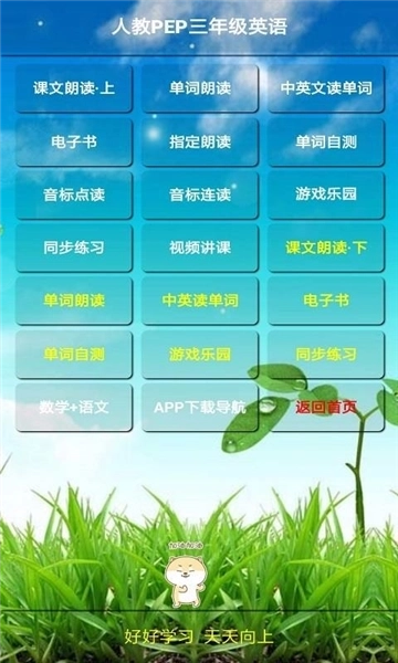 小编精心为您推荐一款专为三年级小学生量身打造的英语学习应用——三年级英语上册跟读软件免费人教版。这款应用不仅精确的课本教材同步点读功能,还提供海量免费课程资源,旨在帮助孩子们培养良好的英语学习习惯,激发他们对英语的兴趣。使孩子在娱乐中熟练地掌握所学的知识并在游戏中引导学生进行练习,有效为学生学好英语道路中打下良好基础。能够为孩子提供丰富有趣的学习知识内容,其中包含了三年级教材所有的学习内容,让孩子在家也能随时进行学习,最重要的是没有网络也能使用,支持离线听读学习,非常适合学习人教版英语的所有孩子;针对孩子的学习情况,平台提供了多种学习模式,且所有的对话内容都是采用动画形式,对孩子有一定的吸引力,可以提高孩子的学习兴趣。