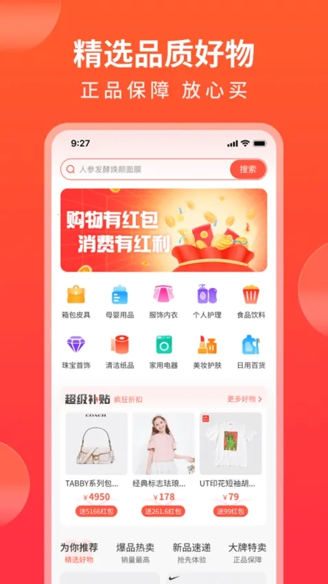 大牌好物:与大牌商家合作,带来大量品牌商品,品质有保障,让你购物更放心。