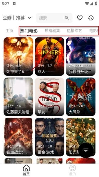 首页设有多个精选分类:如“热门电影”、“热播剧集”、“热播综艺”等。
