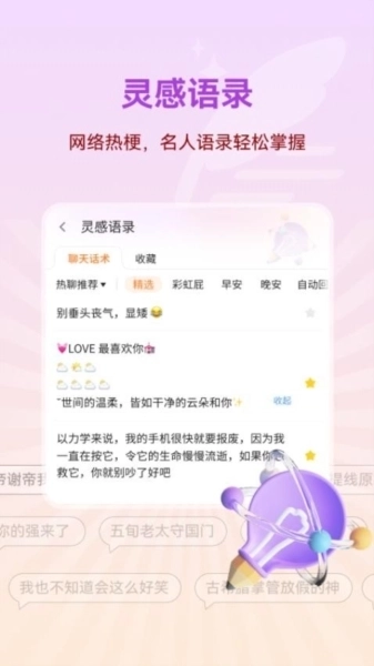 3、海量灵感语录库:网络热梗、名人智慧,尽在其中,助您成为话题焦点,谈吐不凡。