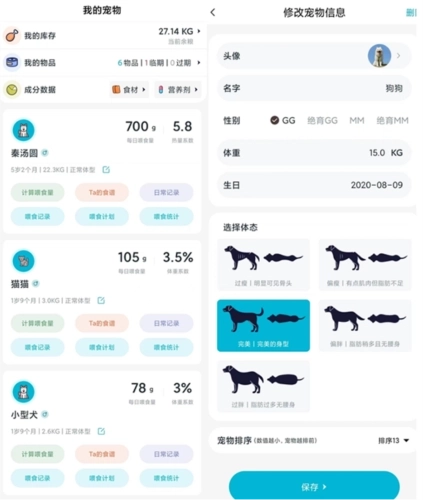 根据前面设置的计算系数,喂食量计算结果会给出建议的喂食量范围,考虑到体型、运动量、消化能力、代谢能力的不同,实际的喂食量也是需要做下调整的。这里建议以体型作为判断标准,如果Ta没有吃完需要考虑吃不下、不爱吃的情况,如果吃完还想吃需要考虑吃不饱、贪吃的情况,可以使用记录体重,通过一段时间喂食后的体型、体重变化来作为喂食量是否达标的标准。
