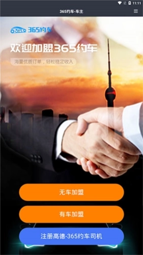 3、跳转后会出现下图中的界面,这里有三种选项:无车加盟、有车加盟、注册高德-365约车司机。