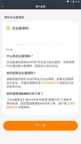 4、点击前两个选项都会要求输入企业邀请码才能完成注册,关于邀请码,每个企业都不同,具体情况请咨询运力企业。