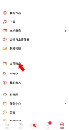 2、来到“我的”界面后,点击“金币账户”选项