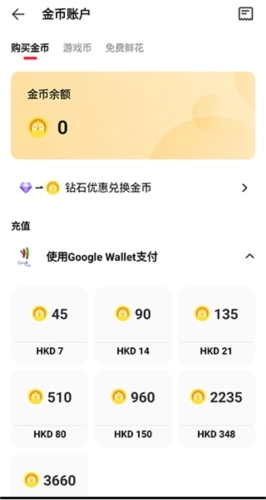 3、进入“金币账户”界面后,在下方的支付方式中选择支付方式以及充值金额