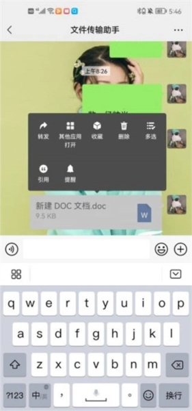 3、软件连接好打印机之后,我们就可以打印微信或QQ上的文件了,只需要对微信或QQ中收到的文件选择“用其他应用打开”。