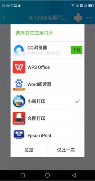 4、然后选择“小新打印”,即可实现微信或QQ文件的打印。