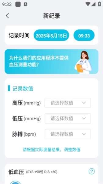 2、填写血压数据。