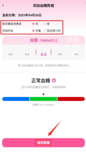 4、填写血糖记录,即可保存数据。