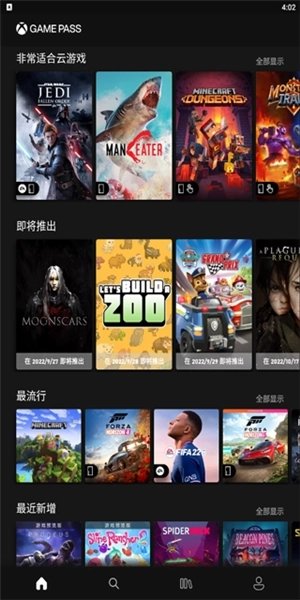 2、发现云游戏,借助XboxGamePass应用程序(测试版)在您的移动设备上进行游戏的流式传输与游玩。