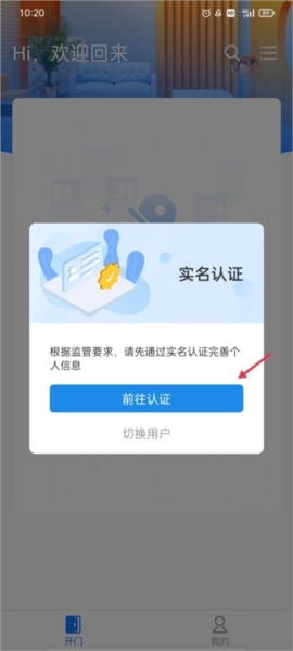 1、注册并登录软件账号之后,页面会自动弹出需要进行实名认证,点击“前往认证”。