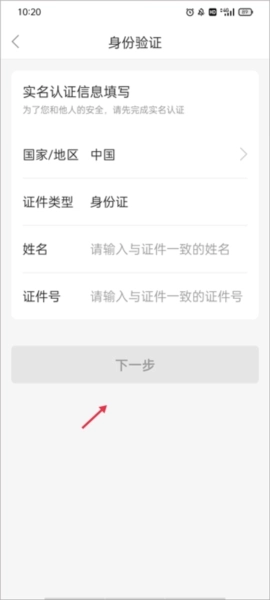 2、输入自己的姓名和证件号,填完就点击下一步。