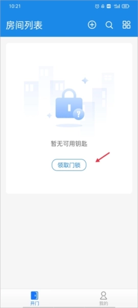 1、点击长租通家软件中【开门】上方的“领取门锁”。